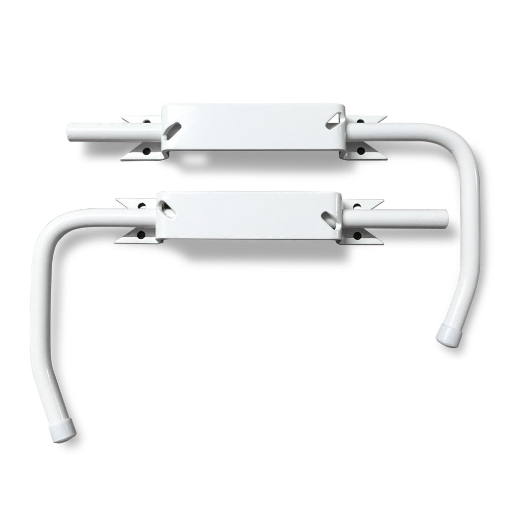 2 arrêts de volet blanc avec poignées pour ouvrir / fermer facilement tous vos volets battants mais aussi pour les bloquer en position ouverte. Pose facile. Aucun trou sur la façade. Modèle spécialement conçu avec une poignée de 24 cm pour les isolations extérieures.