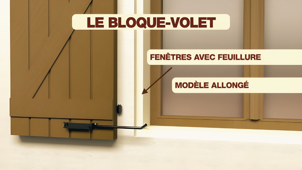 Dans le cas où le volet serait installé en applique, c’est-à-dire en superposition volet fermé, l’utilisation du Modèle Long sera requise pour étendre la course du levier, permettant ainsi un repli sans obstruction contre le mur.
